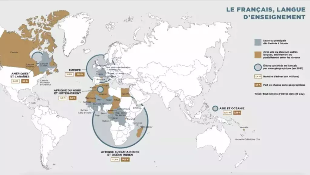 - 93 millions d’élèves et étudiants sont scolarisés en français.